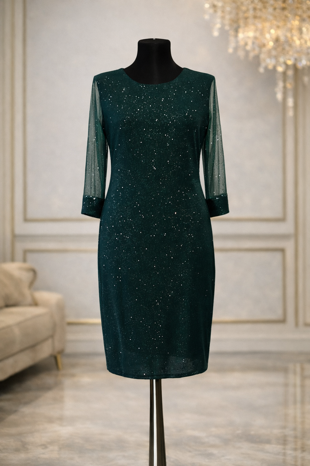 Prozirni rukavi od laganog tila sa sitnim detaljima dodaju romantičan akcenat i pružaju dodatnu eleganciju, čineći haljinu idealnom za proslave, večernje izlaske, svečane događaje i posebne prilike.