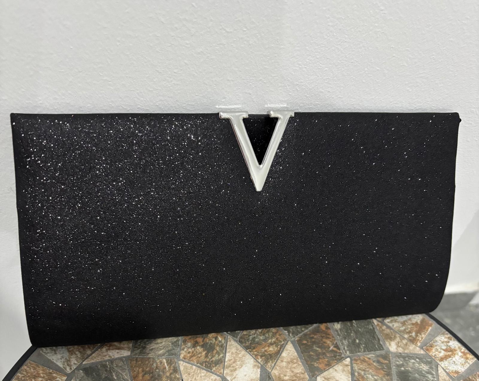 Elegantna crna torbica sa suptilnim sjajem i prepoznatljivim V detaljem predstavlja savršen spoj minimalizma i luksuza. Njena svedena forma i diskretan shimmer čine je idealnim izborom za večernje izlaske, svečane prilike i trenutke kada želiš da ostaviš utisak bez preterivanja.
